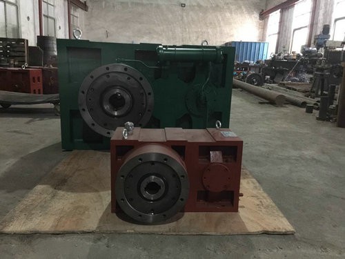 ZLYJ減速機是為了塑料螺桿擠出機配設計的高精度硬齒面帶推力的傳動部件。產品設計采用了JB/T8853-2001所規定的各項技術規范。其特點是齒輪和軸類件采用了高-強度合金鋼。齒輪經滲碳、淬火、廉齒工藝加工。齒輪精度為GB10095-886級。齒面硬度HRC54-62.在空心輸出軸前端配有超規格的推力軸承,承受螺桿的工作軸向力。軸承和油封等主標準皆采用國內優良產品,也可按用戶需要,配裝進口產品。整機具有體積小.承載能力高、傳動平穩、噪聲低、效率高等特點。產品性能已達到國際先進水平??商娲愋瓦M口產品使用。本系列產品中的規格和傳動比為現有用戶的常用數據。用戶在選用時,可將桿的實際傳動扭矩與許用輸出扭矩為準選型。若需與橡膠擠出機配妻,因橡膠擠出機沖擊力較塑料強.請用戶提出具體技術參數.向我廠咨詢再確定選型。